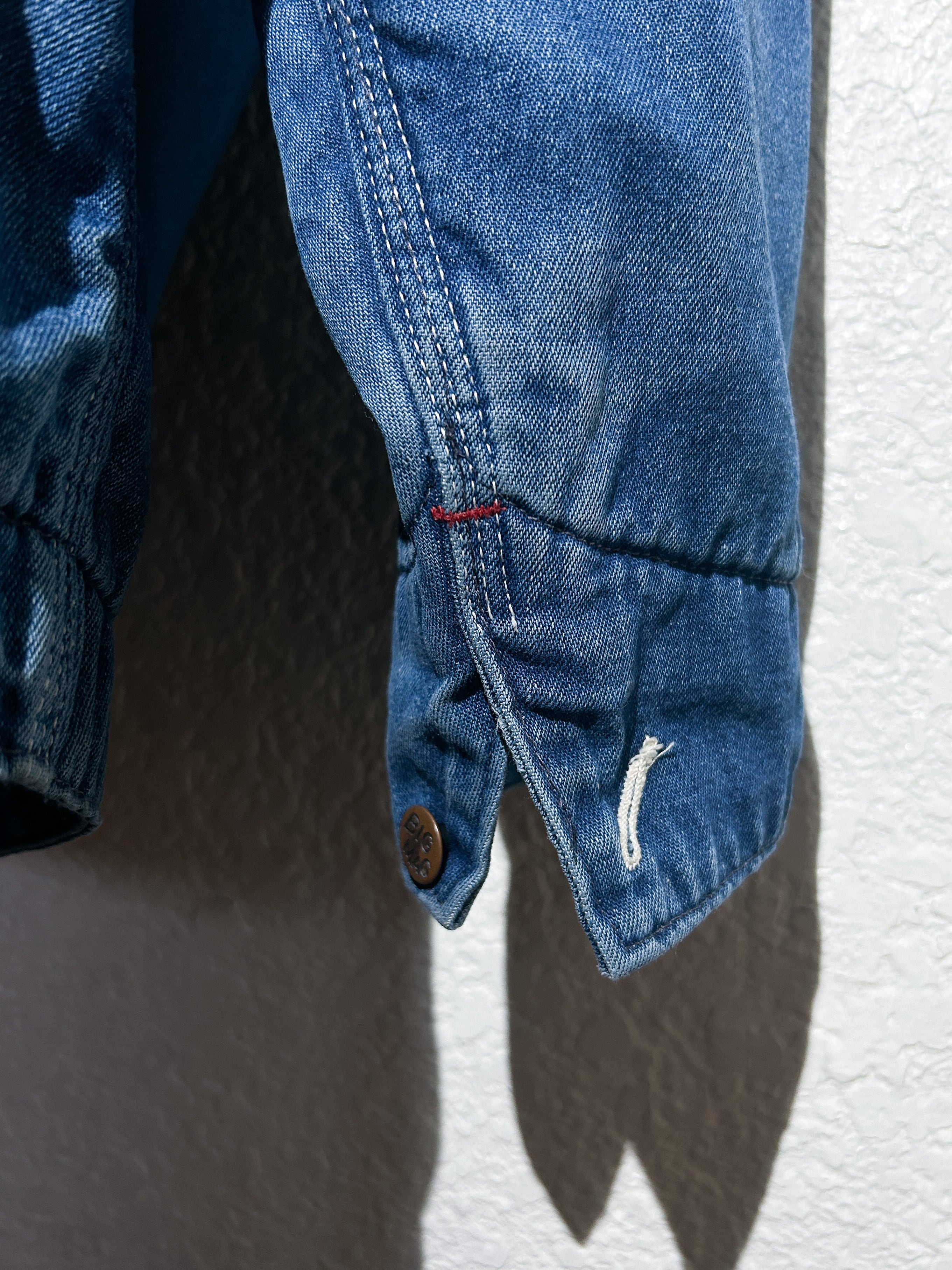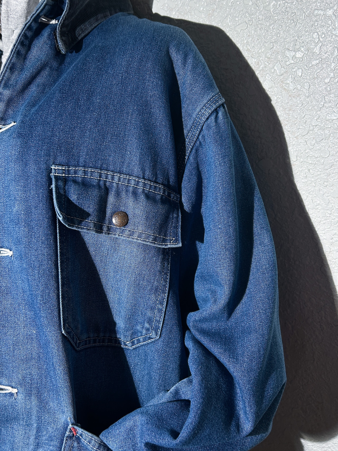 デニムの濃淡ある色落ちが感じられる